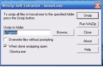 3. Se instalará la película en el disco C:\ gestra, presione Unzip